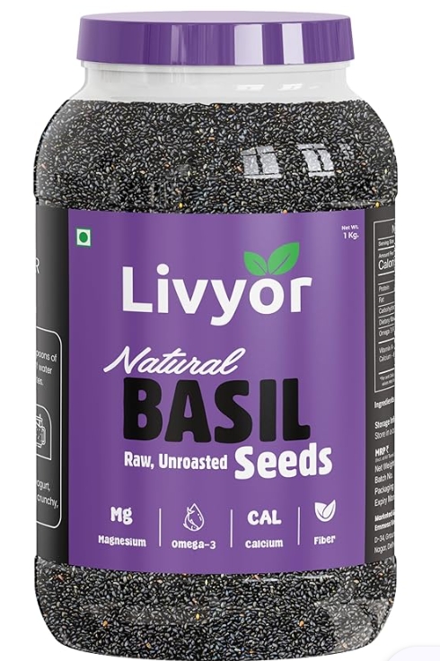Livyor Raw Basil Seeds for eating | Sabja Seeds | Tukmaria (1kg)