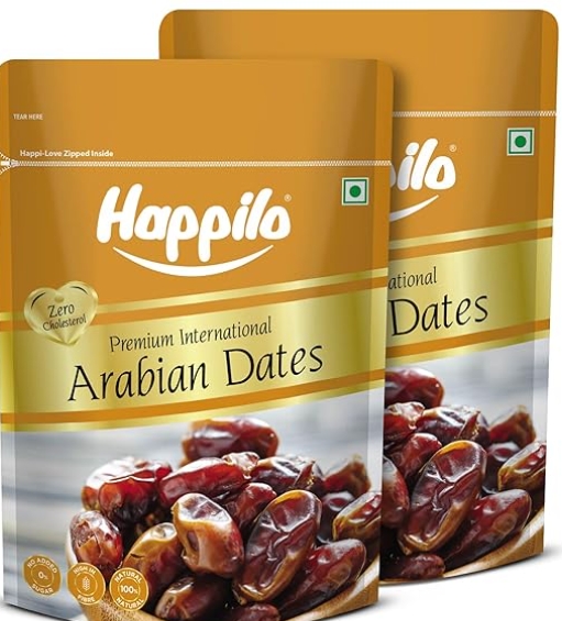 Happilo Premium Arabian Dates Pouch 500 g (Pack of 2) | Arab Khajur or Khajoor | 100% Naturally Dried |